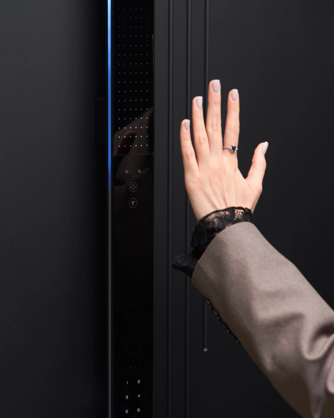 Умная дверная система с современным дизайном и защитой IP67, подходит для загородных домов и уличных дверей.